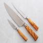 These three are the most utilized knives in the kitchen! This trio of essential kitchen cutlery, is an outstanding starter set for new cooks. Each knife handle in the Oliva Elite knife line is unique and made from beautiful, Italian olive wood. No two handles are the identical, making these knives truly boutique and one-of-a-kind.