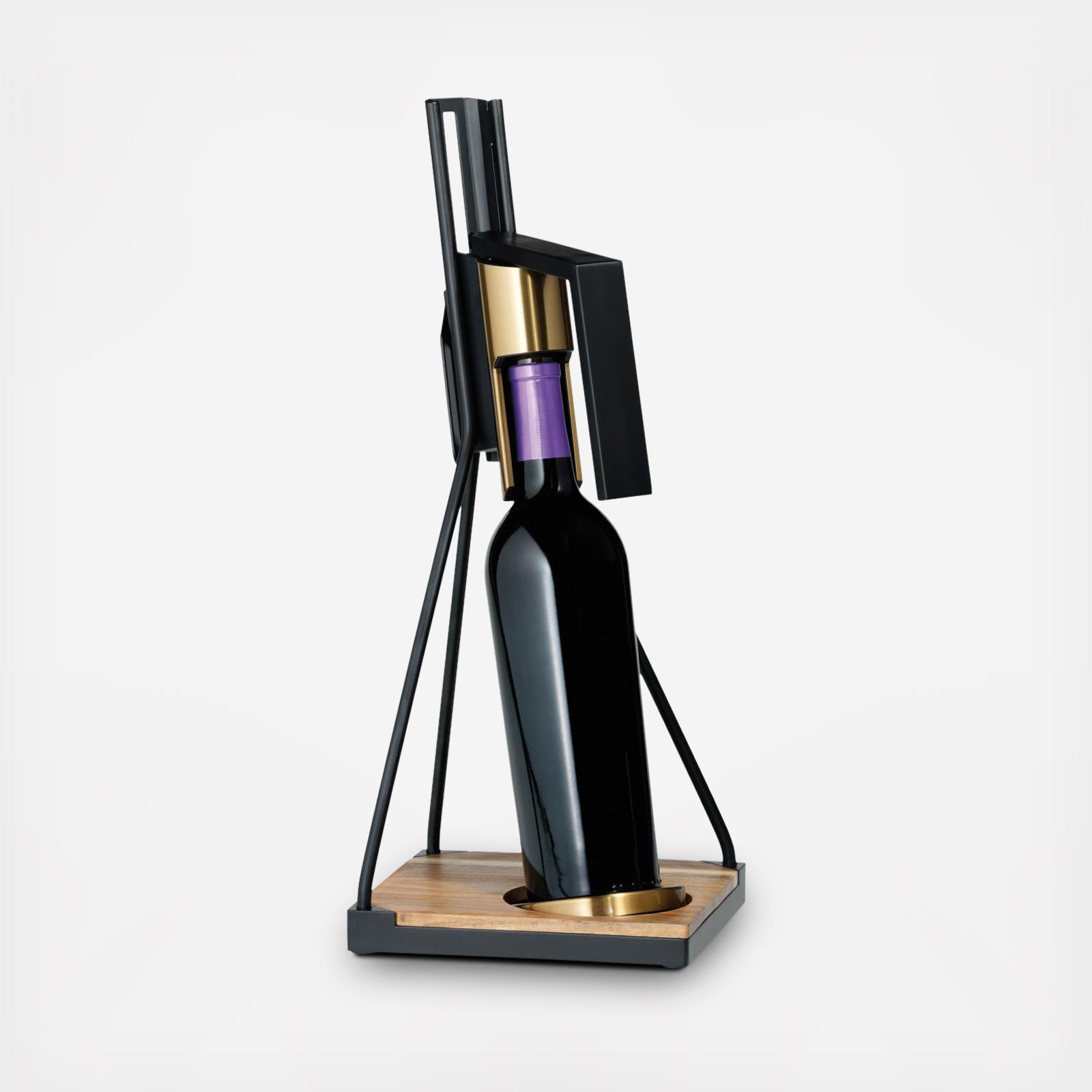 Opening 750ml or 1.5L bottles is a little easier with this tabletop corkscrew from Rabbit, with a secure base that helps stabilize your wine. The sealed-wood base is hand-finished with metal accents for a stylish look.
