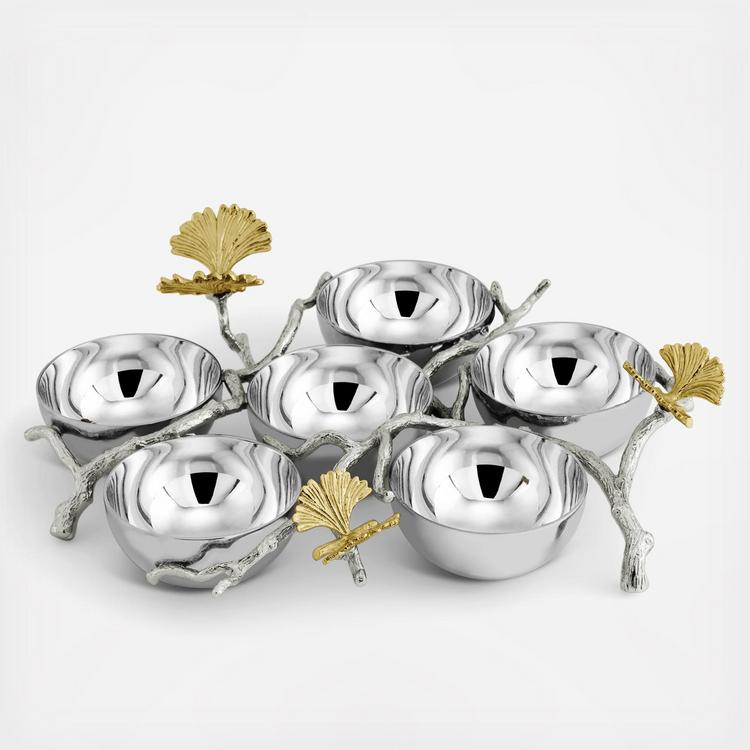 The Butterfly Ginkgo Collection celebrates the representation of flora as fauna. Michael's fascination with a particular type of ginkgo tree, the Ginkgo Biloba, or "Butterfly Ginkgo", which grows with a double leaf reminiscent of a butterfly's wings, gave rise to a fantasia image of the plant. Executed at the highest level of handcraftsmanship, each piece is rendered in solid brass with hand etched cocoon-shaped vessels. The pieces in the collection are a tour de force of the handcrafted process, capturing the poetic spirit that is so deeply indicative of Michael's work.