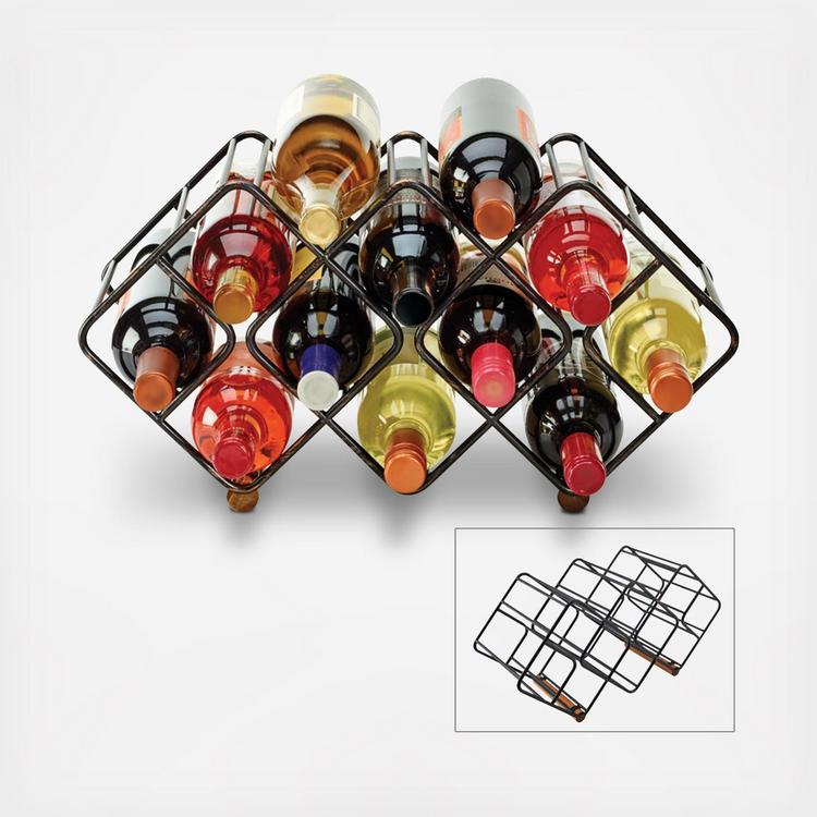 From Gourmet Basics by Mikasa Collection. This Stackable 12 Bottle Wine Rack is a stylish, modern solution for storing wine while keeping it readily accessible. Handcrafted from wrought iron with an acacia wood base, this wine rack features a unique, stackable design so you can easily expand your storage space. Measures 20 in. wide x 10 in. high x 7.5 in. deep. Wipe clean with a damp cloth.
