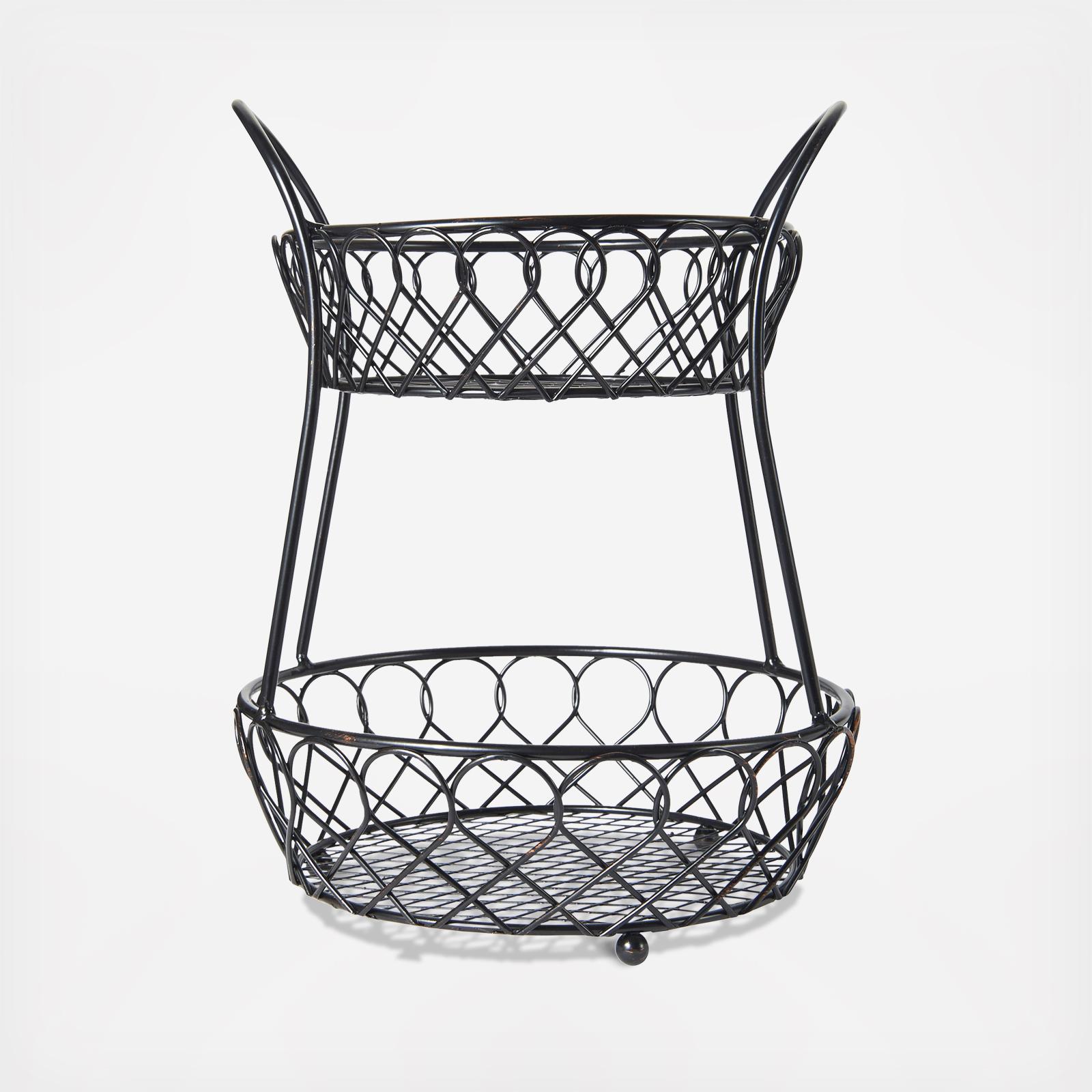 From the Gourmet Basics by Mikasa Collection, this Lattice 2 Tier Countertop Basket will bring a classic touch to your décor. Handcrafted from wrought iron for long-lasting beauty even under rigorous use, this basket features a 2-tier design to create more storage space while cutting down on counter clutter. Wipe clean with a damp cloth. Countertop basket measures 16 in. high x 12 in. diameter.
