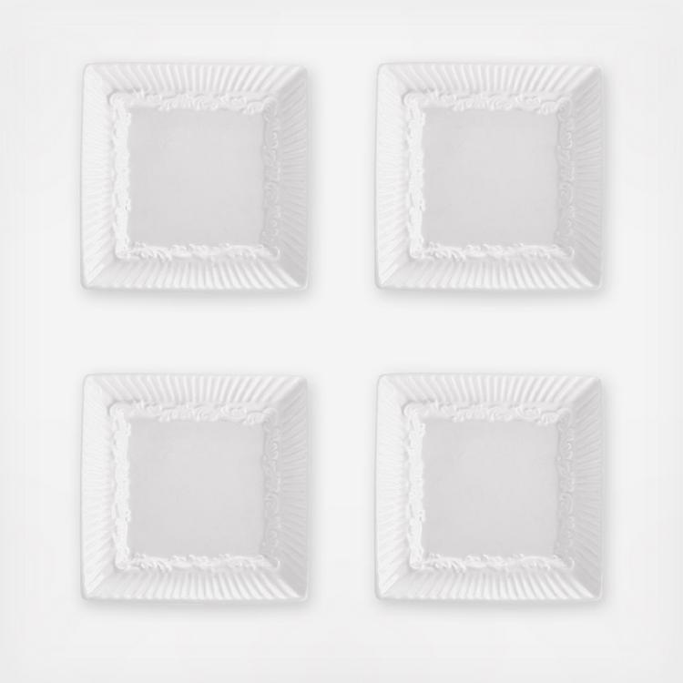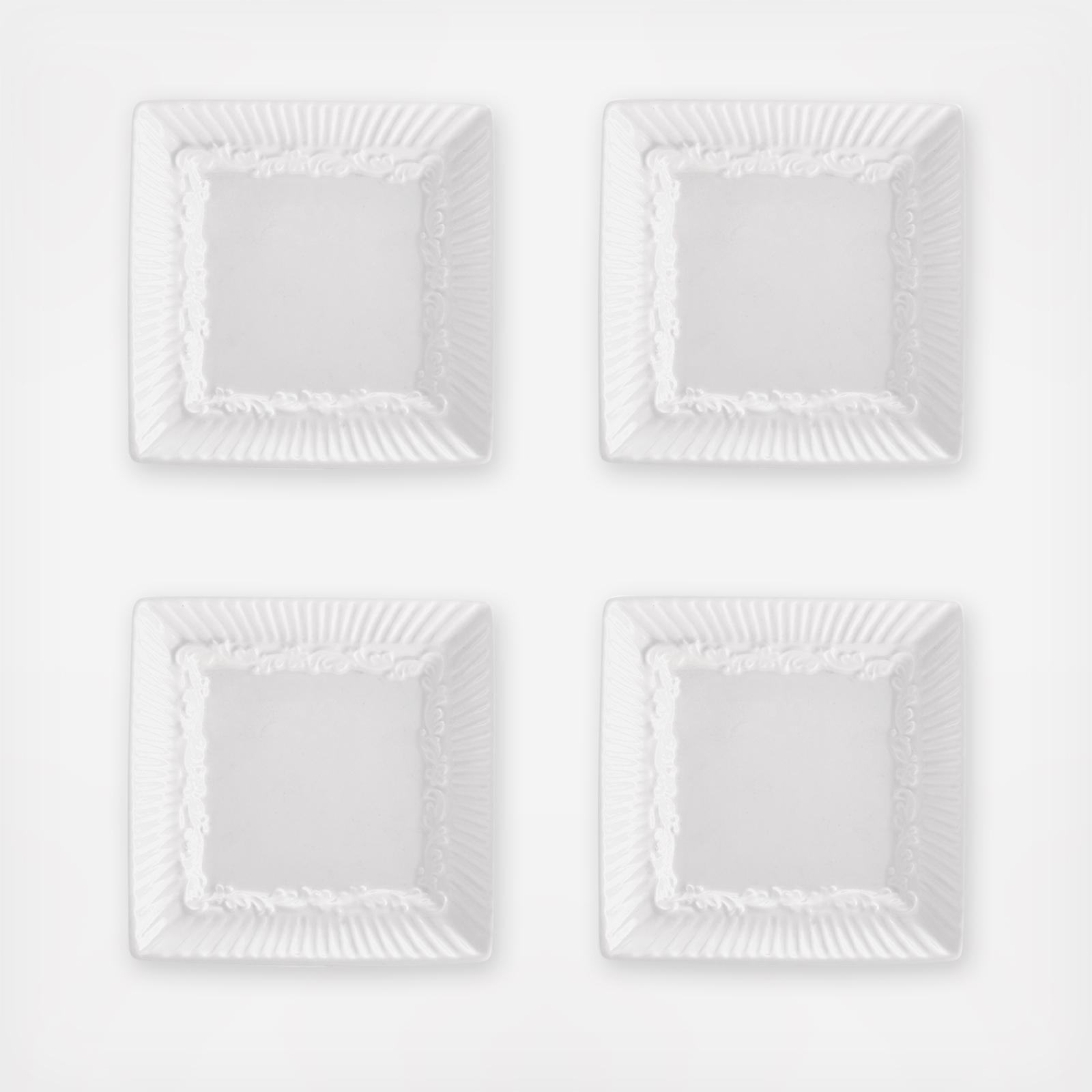 The fluted bands and column-like detailing of this dinnerware recall classical Italian architecture. A best selling pattern, a complete suite of accessories are available to create a classically stylish casual dining statement. Expertly crafted from stoneware, Italian Countryside is dishwasher and microwave safe. Pretty, functional and not only for dipping. This set of Square Dipping Plates are also great for small side servings, sauces or condiments. Set of 4 dipping plates, each 4-1/2 inch square.