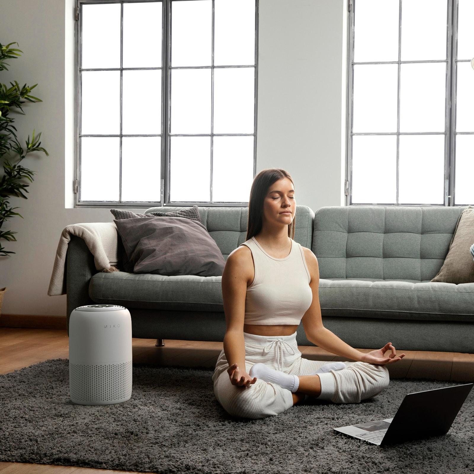 Introducing the Miko Air Purifier H13 True HEPA for Large Room, designed to provide clean and fresh air for spaces up to 1,200 square feet. With its advanced features and cutting-edge technology, this air purifier is your ultimate solution for a healthier indoor environment. Featuring a powerful CADR of 100CFM, the Miko Air Purifier quickly and effectively filters the air in your room, circulating it four times in just one hour. One of the standout features of the Miko Air Purifier is its ability to detect and monitor air quality in real-time. The integrated air quality indicator light displays different colors based on the quality of the air, allowing you to assess the environment at a glance. Additionally, the purifier is equipped with air quality sensors that provide precise measurements, ensuring you stay informed about the air you breathe. With the MikoLife+ app and Wi-Fi connectivity, you have full control over your air purifier from anywhere. Easily power on or off, set quick timers for 2, 4, or 8 hours, and schedule the purifier to operate during specific time windows. The app also offers auto mode, which adjusts the fan speed based on the detected air quality, maximizing efficiency. Receive real-time air quality notifications and monitor outdoor PM 2.5 levels for added peace of mind. Designed for convenience and ease of use, the Miko Air Purifier offers four fan speeds to suit your preferences and requirements. The sleep mode ensures a peaceful and undisturbed sleep environment with reduced noise levels ranging from 24 to 48 decibels. The child lock feature provides added safety for your little ones, preventing accidental changes to the settings. Maintaining the Miko Air Purifier is hassle-free thanks to the filter change reminder and remaining time display. The large, high-quality filter can last up to 8 months, ensuring long-lasting and efficient performance. Rest assured knowing that this purifier is ETL and CARB certified, meeting rigorous safety and quality standards. Don't compromise on your health and well-being. Experience cleaner, fresher air with the Miko Air Purifier H13 True HEPA for Large Room. Take control of your indoor air quality today with this exceptional air purifier.