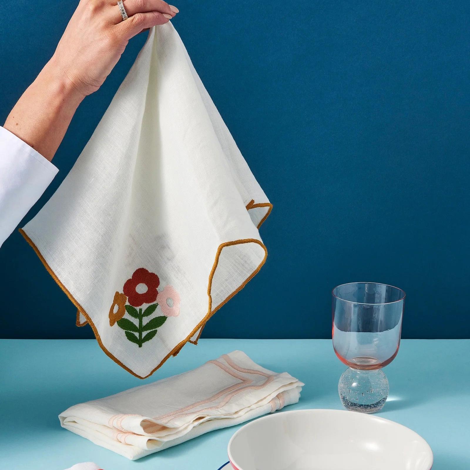 Taking cues from Matisse’s cut-out creations, the Floral Collection’s signature flowers pop on crisp white linen. A coordinating picot-embroidered border adds the perfect finish to the eco-friendly staple.