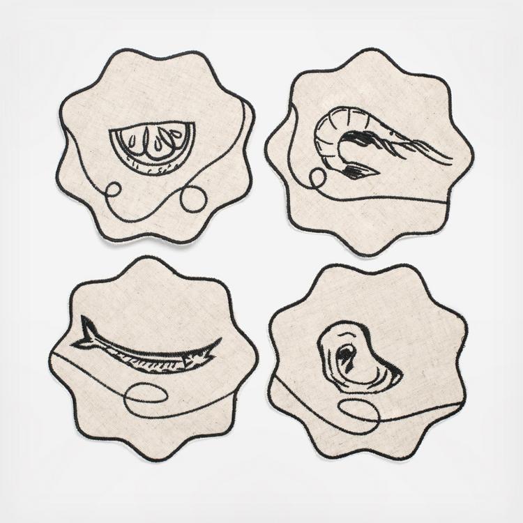 A little Picasso with your pisco sour? Our product designer Leslie Hamilton took inspiration from the artist’s line drawings to create the seafood sketches embroidered on each linen coaster. They are made with extra thick linen and are way too pretty to save for parties, so we love to keep them out as coasters for 24/7 style.