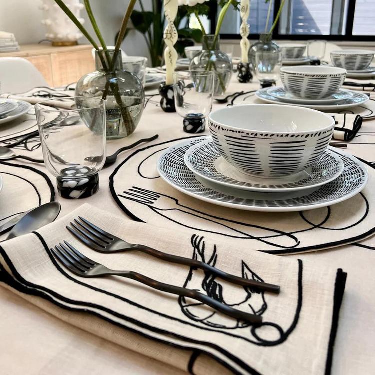 Bring a seaside vibe to your table with Misette product designer Leslie Hamilton’s playful line drawings. With artful embroidery on linen, these napkins add a Hamptons touch to your table no matter how far you are from the coast.