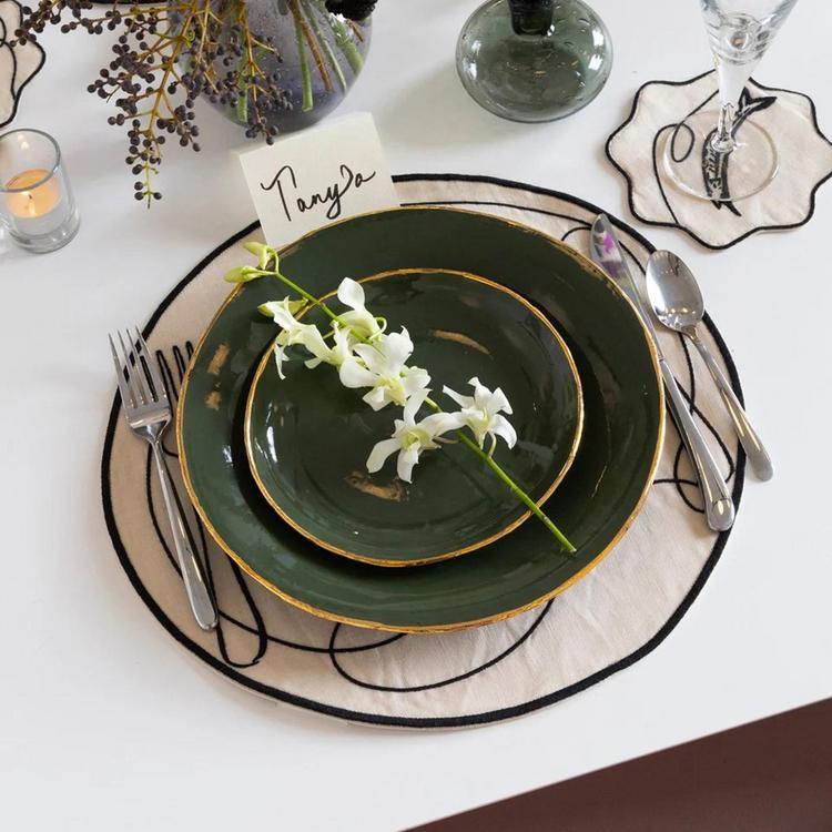 An elegant palette gets a playful twist with embroidered cutlery in the Line Drawing Collection’s signature sketched style. No matter what you are serving, the high-quality linen brings charm to every meal.