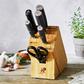 MIYABI moves one step closer to perfection with Kaizen II, The Kaizen II block set boasts traditional Japanese craftsmanship combined with the best hardening technology and beautiful modern design. Miyabi Kaizen II knives are as beautiful as they are functional. The blades’ gorgeous flower Damascus pattern is dramatically darkened through acid dipping. The double FRIODUR ice-hardened blade makes for improved corrosion resistance and astonishing durability. Artisans hand-hone the blades using the venerable four-step Honbazuke method. This fine attention to detail translates into a work of art that is the ultimate in precision cutting. The blade is balanced by a substantial D-shaped handle made of black pakkawood. Effortless to hold, the classic Japanese D shape handle offers a comfortable grip for stress-free cutting. This striking handle truly matches the caliber of the blade.