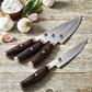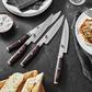 Miyabi Artisan knives combine exceptional beauty with expert craftsmanship. The knives feature an industry-leading micro-carbide SG2 core, plated in nickel and stainless steel for outstanding cutting performance and a stunning hammered "Tsuchime" finish. Each knife is hand-honed in Seki, Japan using traditional Japanese sharpening methods, resulting in scalpel like sharpness that glides effortlessly through food. The uniquely shaped handle is ergonomically designed to be comfortable in the hand. Constructed of Rosewood Pakka wood, the Artisan handle features decorative accents and a stainless steel endcap, enhancing its striking appearance.