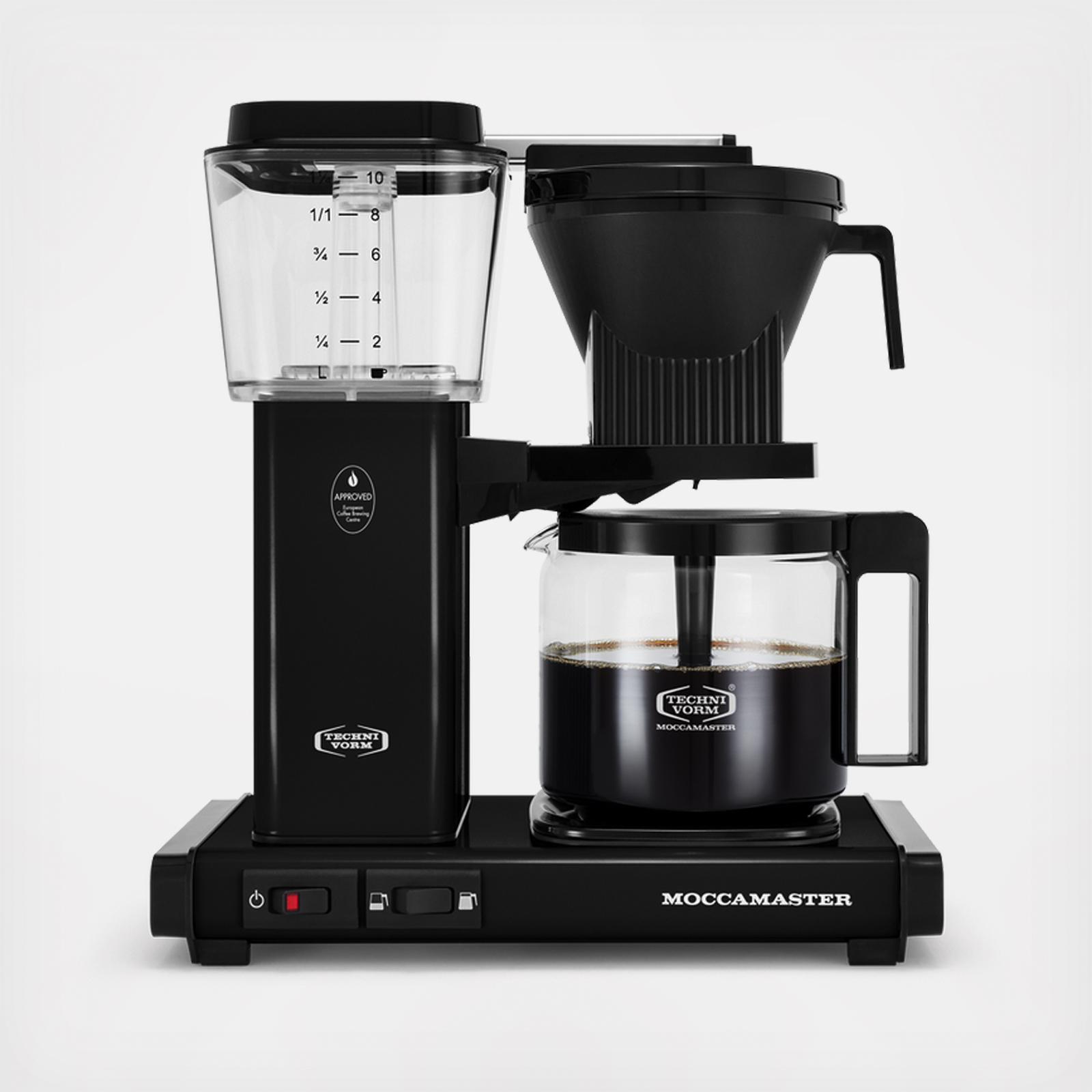 The new KBGV Select makes it easy to brew either a half or full carafe, the selector switch allows you to choose the amount you prefer. It features a glass carafe and an automatic drip-stop brew-basket that stops the flow of coffee when the carafe is removed. The KBGV Select brews carafe of coffee in four to six minutes. After brewing, the coffee is kept warm on unique hot plate. The hot plate's independent heating element ensures that your coffee is held at the perfect temperature, no matter what amount you've brewed. All Moccamaster Coffee Brewers are handmade in the Netherlands and backed by an industry-leading 5-year warranty.