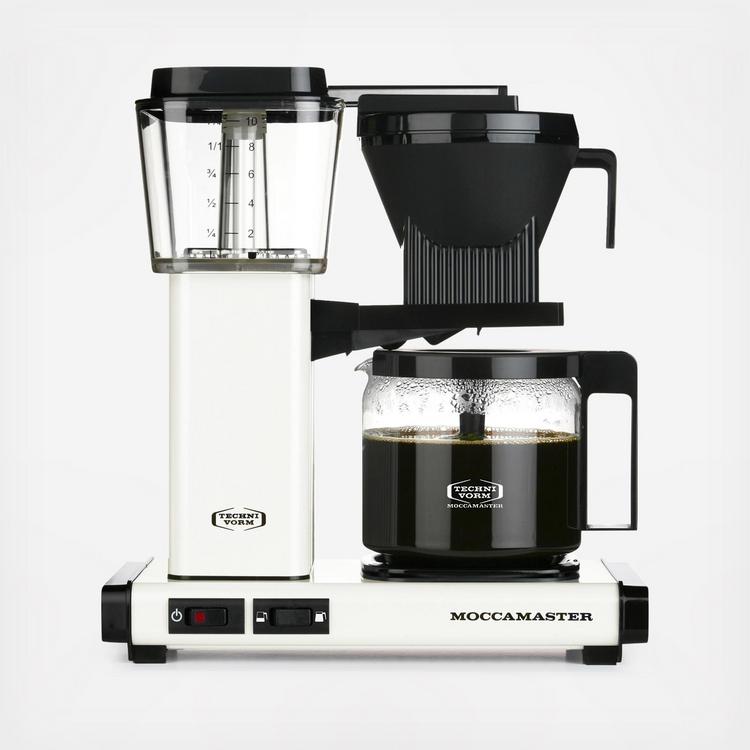 The new KBGV Select makes it easy to brew either a half or full carafe, the selector switch allows you to choose the amount you prefer. It features a glass carafe and an automatic drip-stop brew-basket that stops the flow of coffee when the carafe is removed. The KBGV Select brews carafe of coffee in four to six minutes. After brewing, the coffee is kept warm on unique hot plate. The hot plate's independent heating element ensures that your coffee is held at the perfect temperature, no matter what amount you've brewed. All Moccamaster Coffee Brewers are handmade in the Netherlands and backed by an industry-leading 5-year warranty.