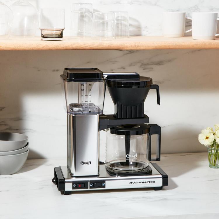 The new KBGV Select makes it easy to brew either a half or full carafe, the selector switch allows you to choose the amount you prefer. It features a glass carafe and an automatic drip-stop brew-basket that stops the flow of coffee when the carafe is removed. The KBGV Select brews carafe of coffee in four to six minutes. After brewing, the coffee is kept warm on unique hot plate. The hot plate's independent heating element ensures that your coffee is held at the perfect temperature, no matter what amount you've brewed. All Moccamaster Coffee Brewers are handmade in the Netherlands and backed by an industry-leading 5-year warranty.