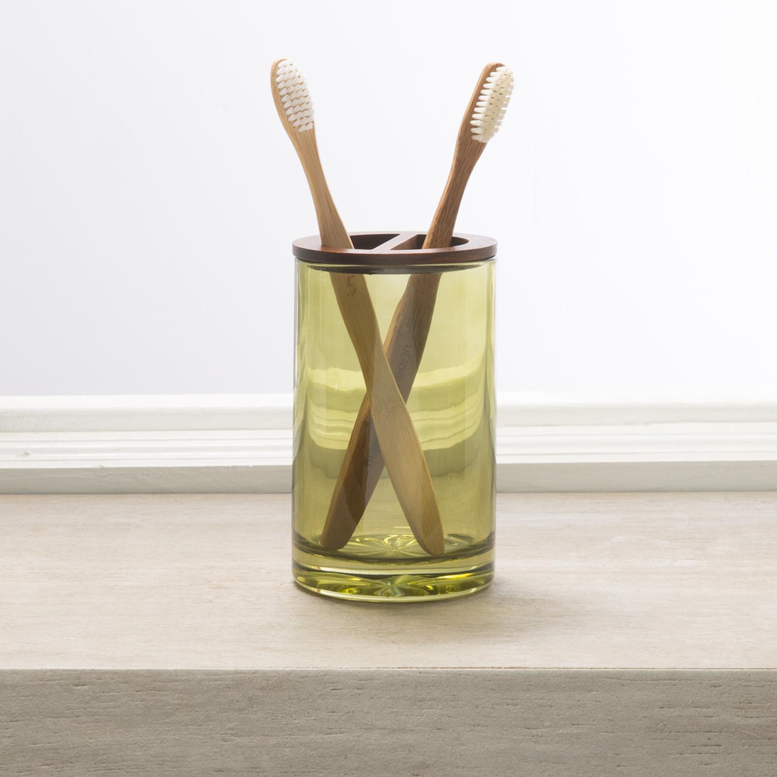Revitalize your bathroom aesthetic with our Acacia Wood and Heavy Cast Glass Vaso Toothbrush Holder a harmonious blend of nature and sophistication. Crafted with precision, the rich Acacia wood base harmonizes with the substantial cast glass, creating an elegant holder. Elevate your sink area with this unique accessory that seamlessly combines organic charm with robust functionality, transforming your daily routine into a tactile experience.