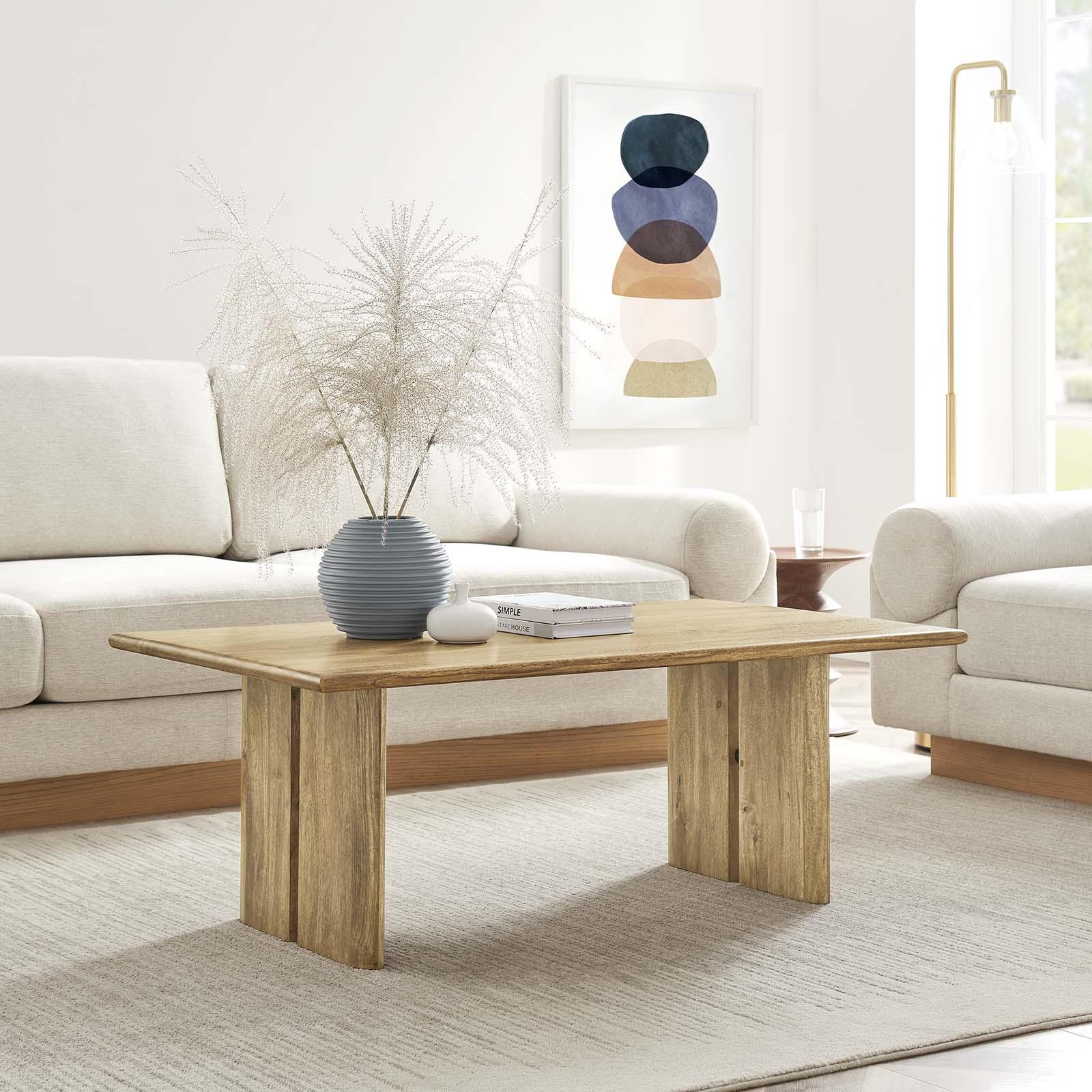 Experience the seamless fusion of natural elegance with the Amistad Wood Coffee Table. This centerpiece breathes life into your living space with its warm, inviting charm, and endless opportunities for relaxing coffee mornings or cozy movie nights. Meticulously crafted with authentic mango wood, this coffee table's durability matches its stunning aesthetics. Further enhancing its functionality, adjustable non-marking foot pads ensure stability while safeguarding your flooring from scuffs and scratches. Turning any lounging moment into an occasion of comfort and modern farmhouse style, this accent table comfortably accommodates multiple mugs and accessories. Assembly required.