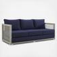 Weave conversational threads into a rollicking good time with Aura Outdoor Patio Sofa. Aura comes with a synthetic wicker rattan weave and a powder-coated aluminum frame that delivers a softly versatile outdoor collection that shifts to meet the needs of the moment. Outfitted with machine washable and fade resistant all-weather fabric cushions, and designed with an extra wide and deep body, Aura will make your outdoor spot the focal point of good memories and festive gatherings while enhancing your patio, backyard or poolside arena. Featuring thick cushions and non-marking foot caps, enjoy spacious seating and enhanced comfort with this reliable piece of outdoor furniture. Comes fully assembled.