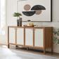 Elevate your decor with the modern Capri Sideboard, a large and spacious cabinet that opens up to versatile storage options. This piece effortlessly transitions from a sideboard storage cabinet to an elegant credenza.