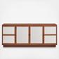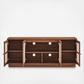 Elevate your decor with the modern Capri TV Console, a large and spacious console that opens up to versatile media storage options.