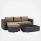 Gather stages of sensitivity with the Convene outdoor sectional series. Made with a synthetic rattan weave and a powder-coated aluminum frame, Convene is a versatile outdoor collection that shifts and combines according to the spontaneous needs of the moment. Outfitted with all-weather fabric cushions, leave a positive impression on friends and family while enhancing your patio, backyard or poolside repast in this series of palpable distinction. This installment of the series is an Outdoor Patio Sofa Set.