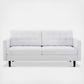 Reinspire decor in a home, office, or apartment with the Exalt Tufted Fabric Sofa. Featuring deep button tufting and rounded edges, this upholstered sofa abounds in contemporary style and mid-century modern design. Upholstered in soft polyester fabric, this tufted sofa is complete with dense foam padding and a sinuous spring support system for a premium seating experience. This fabric sofa is crafted with durable solid wood and rests on four black wood legs with foot pins to protect flooring. Bring retro modern charm to your living room, bedroom, lounge room, den, or home office with Exalt.