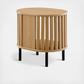 Add contemporary style to your home with the Fortitude Side Table. Its captivating oval shape, timber style strip design, straight round black metal legs, and open storage area make it a versatile addition to any room. Fortitude is perfect as a side table in your living room or as a nightstand in your bedroom. Made from MDF and particleboard with a wood grain finish, this side table features an easy-to-clean surface. With a top weight capacity of 200 lbs, it can hold your essentials with ease. Includes non-marking foot caps. Assembly required.