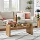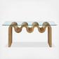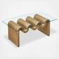 The Ondine Glass and Wood Coffee Table stands out with its unique retro design, adding an artistic touch to any room. Its trendy frame, shaped in a bold wave-like form across the top, is crafted from durable materials and finished with a natural ash veneer, providing a rich, textured look, or a solid color finish to add some flair to your space.