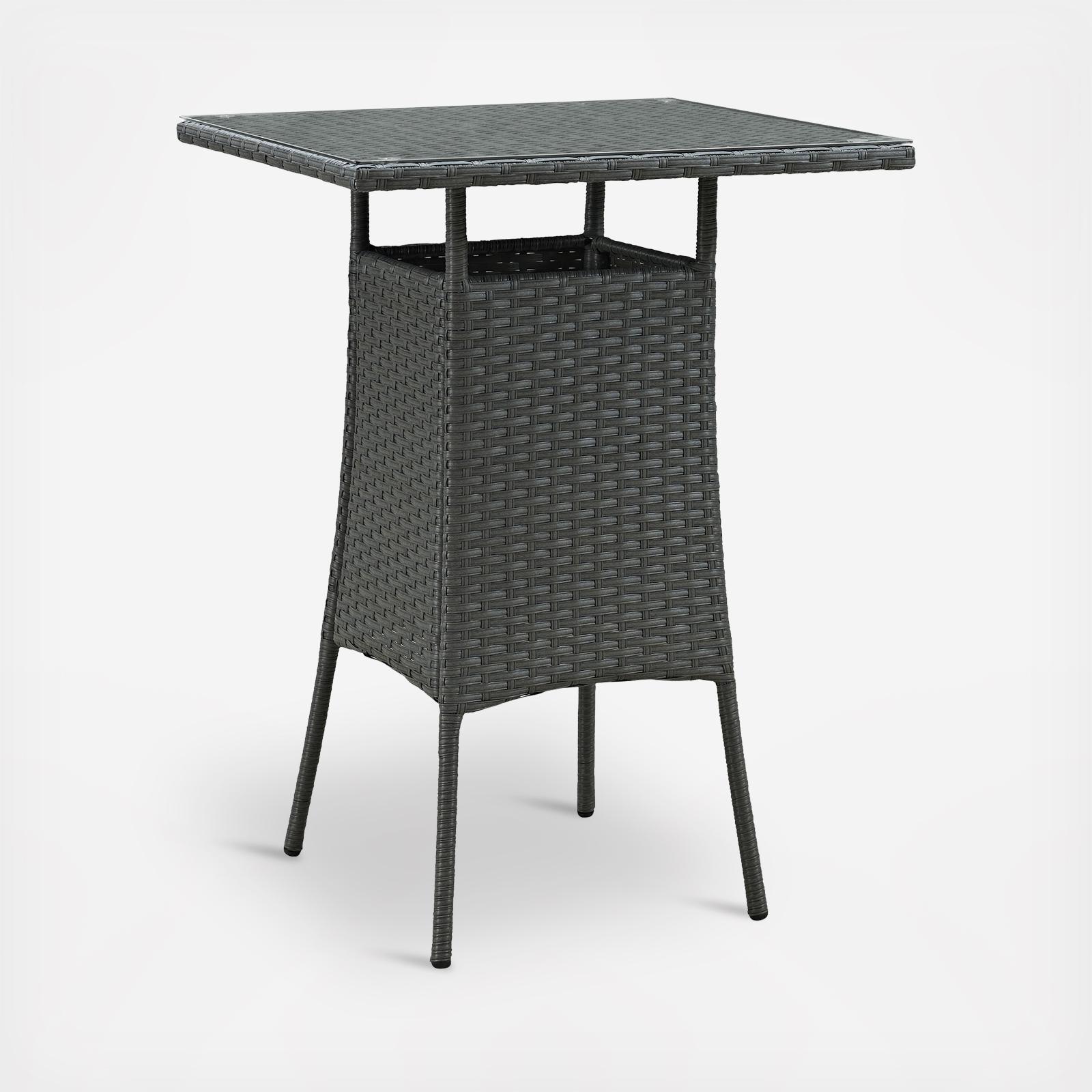 Outfit your patio with an imaginative outdoor sectional series of exceptional quality. The Sojourn series offers a robust seating experience that easily rearranges according to usage. Outfitted with industry-leading Sunbrella® fabric cushions, synthetic rattan weave, UV protection, powder-coated aluminum frame, immensely enjoy your outdoor time with a series that enhances patio, backyard, or poolside areas. This installment of the series is an Outdoor Patio Bar Table.