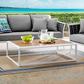 Gather family and friends for pleasant weather and good conversation with the Stance Outdoor Collection. Boasting a contemporary modern look, Stance features a sleek powder-coated aluminum frame offering a charming complement to the slatted synthetic wood tabletop—the perfect location to rest a plate of hors d'oeuvres, a cocktail, or cup of coffee. A versatile set designed for long-lasting durability, each piece in the Stance Collection can be mixed and matched and effortlessly arranged to fit the spontaneous needs of you and your guests. Comes Fully Assembled.