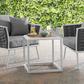 Gather family and friends for pleasant weather and good conversation with the Stance Outdoor Collection. Boasting a contemporary modern look, Stance features a sleek powder-coated aluminum frame offering a charming complement to the slatted synthetic wood tabletop—the perfect location to rest a plate of hors d'oeuvres, a cocktail, or cup of coffee. A versatile set designed for long-lasting durability, each piece in the Stance Collection can be mixed and matched and effortlessly arranged to fit the spontaneous needs of you and your guests.