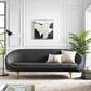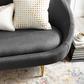 Spark memorable conversations with the Sublime Curve Back Sofa. Finely upholstered in soft polyester fabric generously padded in dense foam, Sublime creates a premium seating experience for you and your guests. Exterior vertical channel tufting artfully contrasts the curved back form of this tailored statement piece perfect for the modern living room, entryway, lounge area or bedroom. Doubling as an accent couch or settee for your extra seating needs in home or apartment, Sublime comes positioned on four tapered and splayed gold stainless steel legs with non-marking foot caps.