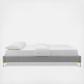 Uplift your master bedroom or guest bedroom decor with the Sutton Performance Velvet Bed Frame. A size bed frame covered in stain-resistant performance velvet, this upholstered bed frame is a sturdy mattress foundation for memory foam, innerspring, latex, and hybrid mattresses. Eliminating the need for a box spring, the MDF frame of this queen bed is complete with a wood slat support system crafted with poplar for lasting durability and support. This slatted bed frame rests on gold metal legs with non-marking foot caps and includes a reinforced center beam with two support legs for enhanced stability. The Sutton Bed Frame is compatible with a variety of different headboard styles, or makes a statement as a stand-alone piece in the bedroom. Mattress not included.