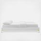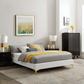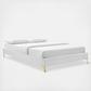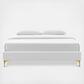 Uplift your master bedroom or guest bedroom decor with the Sutton Performance Velvet Bed Frame. A size bed frame covered in stain-resistant performance velvet, this upholstered bed frame is a sturdy mattress foundation for memory foam, innerspring, latex, and hybrid mattresses. Eliminating the need for a box spring, the MDF frame of this queen bed is complete with a wood slat support system crafted with poplar for lasting durability and support. This slatted bed frame rests on gold metal legs with non-marking foot caps and includes a reinforced center beam with two support legs for enhanced stability. The Sutton Bed Frame is compatible with a variety of different headboard styles, or makes a statement as a stand-alone piece in the bedroom. Mattress not included.