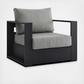 Enliven your alfresco spaces with the Tahoe Aluminum 4-Piece Outdoor Patio Set. This modern outdoor patio set includes two armchairs, a sofa, and a coffee table, crafted with durable powder-coated aluminum, dispensing contemporary elegance in your outdoor lounge spaces. The Tahoe 4-Piece Patio Set is perfect for poolside lounging with a sunproof, water-resistant fabric-covered seat and backrest. With dense foam padding for sustaining comfort and removable, stain-resistant cushions on the sofa and armchairs, this patio set is low maintenance and high performing. A durable patio set, Tahoe comes with easy-to-follow assembly instructions and features non-marking foot glides to protect your deck or patio floor.
