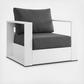 Enliven your alfresco spaces with the Tahoe Aluminum 4-Piece Outdoor Patio Set. This modern outdoor patio set includes two armchairs, a sofa, and a coffee table, crafted with durable powder-coated aluminum, dispensing contemporary elegance in your outdoor lounge spaces. The Tahoe 4-Piece Patio Set is perfect for poolside lounging with a sunproof, water-resistant fabric-covered seat and backrest. With dense foam padding for sustaining comfort and removable, stain-resistant cushions on the sofa and armchairs, this patio set is low maintenance and high performing. A durable patio set, Tahoe comes with easy-to-follow assembly instructions and features non-marking foot glides to protect your deck or patio floor.