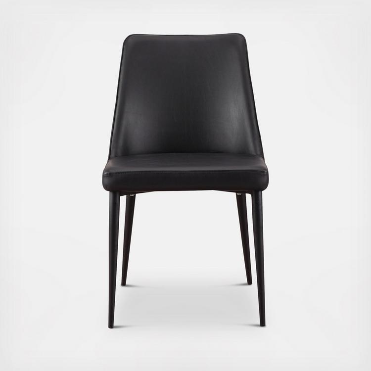 Dig into simplicity with the Lula dining chair. Sleek upholstery offers contemporary cool, while a welcoming scooped seat provides plenty of comfort for family dinners. A sturdy iron frame with slim, tapered legs provides the final touches to this showstopping chair. An easy seat- bon appétit!