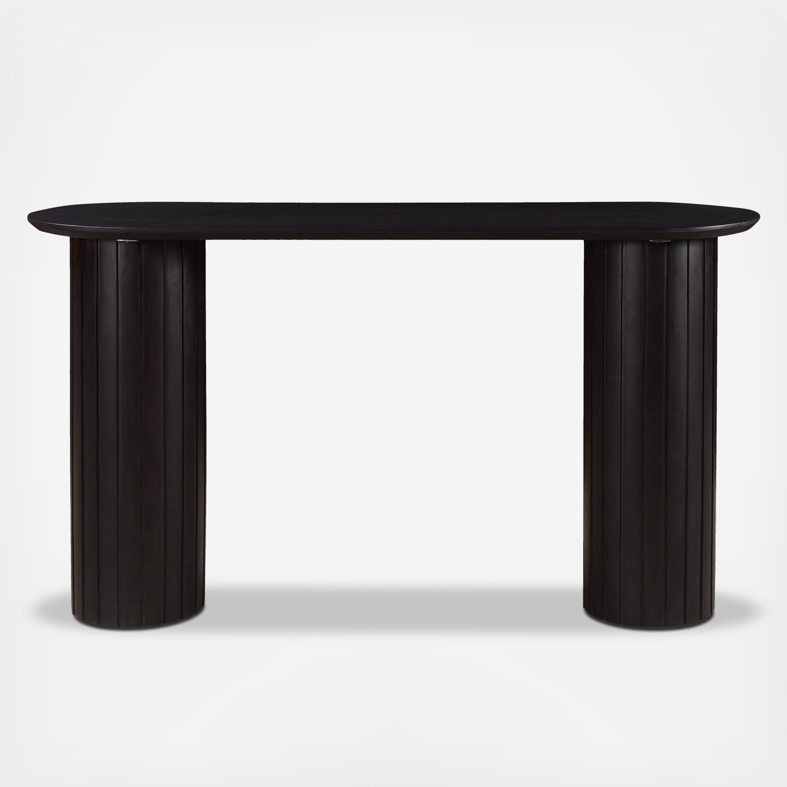 A convergence of shape and form, the Povera console table will serve as the pillar of your entryway or living area. Povera features two large columns supporting an expansive tabletop, their gentle ribbing reminiscent of ripples and waves. This console table uses simple geometry and natural materials, incorporating the elegance of ratio to offer a bold statement appeal.