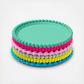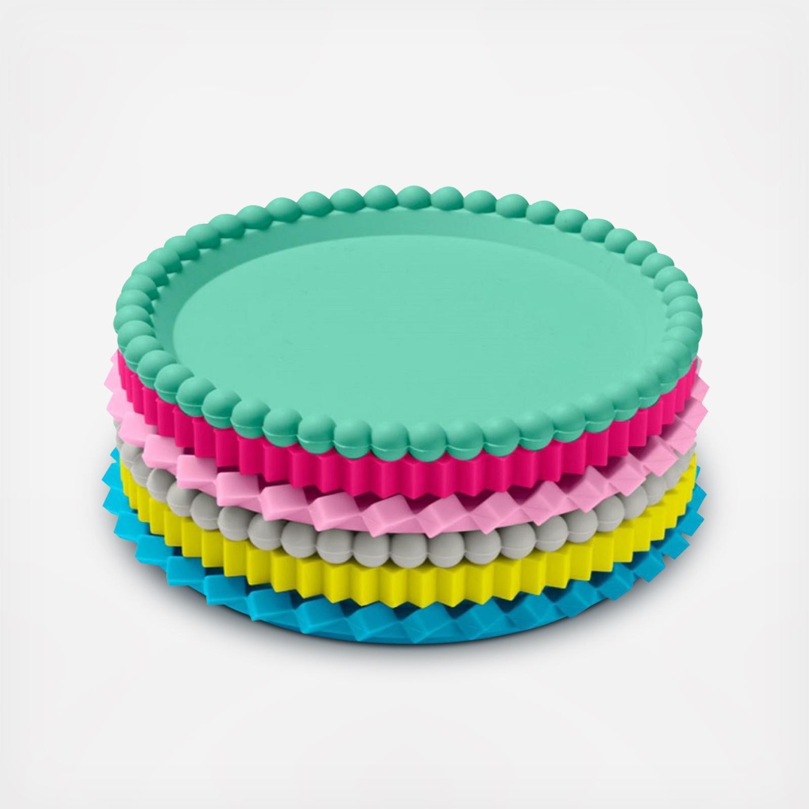 Designed by Panisa Khunprasert. These sets of colorful silicone stacking coasters feature varying geometric faceted edges that create a visual and tactile appeal. Made in China of food-grade silicone. Dishwarsher safe. Set of six.
