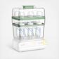 3-Layer Extra-Large Capacit Momcozy Bottle Sterilizer and Dryer can accommodate up to 6-12 baby bottles, along with lots of breast pump parts, pacifiers, and teethers etc. Its spacious 3-layer design allows you to sterilize all your baby essentials at once.