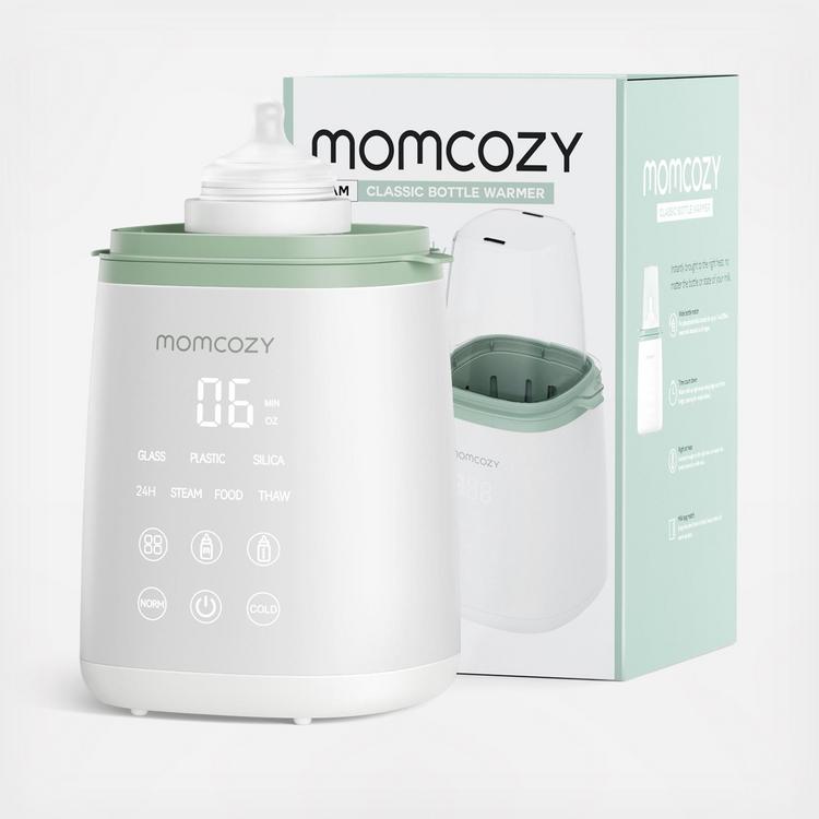 Momcozy Bottle Warmer, Fast Warming/Food Heating/Steaming/Thaw/24H Keep Warm/Material Selection. Momcozy smart bottle warmer fits most bottle types and materials and heats baby bottles and baby food safely and evenly. It is suitable for feeding babies at different ages, from breast milk.
