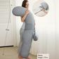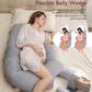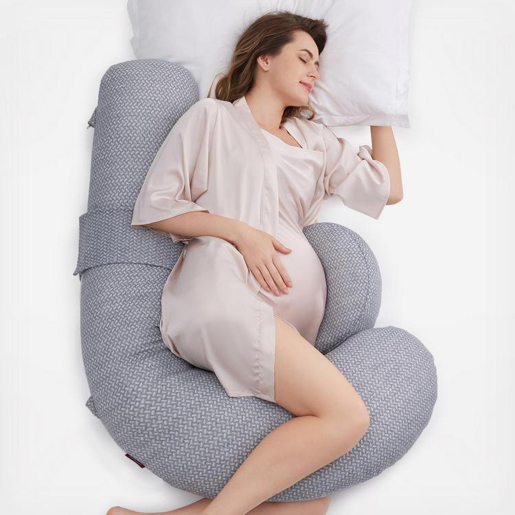 The perfect combination of a J-shaped pillow and a W-shaped wedge pillow, designed to hug your entire body and provide support from back to belly for ultimate comfort. It offers support for your back, belly, hips, knees, and legs, helping you achieve a restful night's sleep without tossing and turning. Our pillow alleviates discomfort associated with pregnancy, sciatica, fibromyalgia, gastric reflux, back pain, and more. It helps you breathe easier, promotes better circulation, and aids muscle relaxation. Say goodbye to discomfort and enjoy better sleep with our pillow. Equipped with an adjustable belly wedge pillow, you can easily adjust the velcro to fit your belly size. It’s suitable for all pregnancy trimesters and body types, offering the right support for your growing belly while relieving pressure. Unlike other full-body maternity pillows that come with a built-in headrest, our F-shaped maternity body pillow allows you to use your own custom head pillow. This design eliminates the need to adjust to a new pillow, enabling you to enjoy a comfortable and restful sleep right away. The Momcozy pregnancy pillow is designed to not invade too much of your partner's personal space, so you can still snuggle comfortably. Additionally, you can use it for extra support while reading or watching TV. Even after birth, our pillow will support you during bottle-feeding.