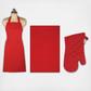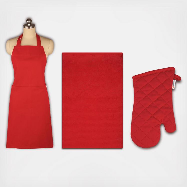 Cotton Chef Apron is oversized and adjustable for superior fit and protection. Matching kitchen towel is also terry ridged cotton, thirsty and oversized to dry more dishes and hands. Matching oven mitt is cotton twill with a natural terry lining for added protection.