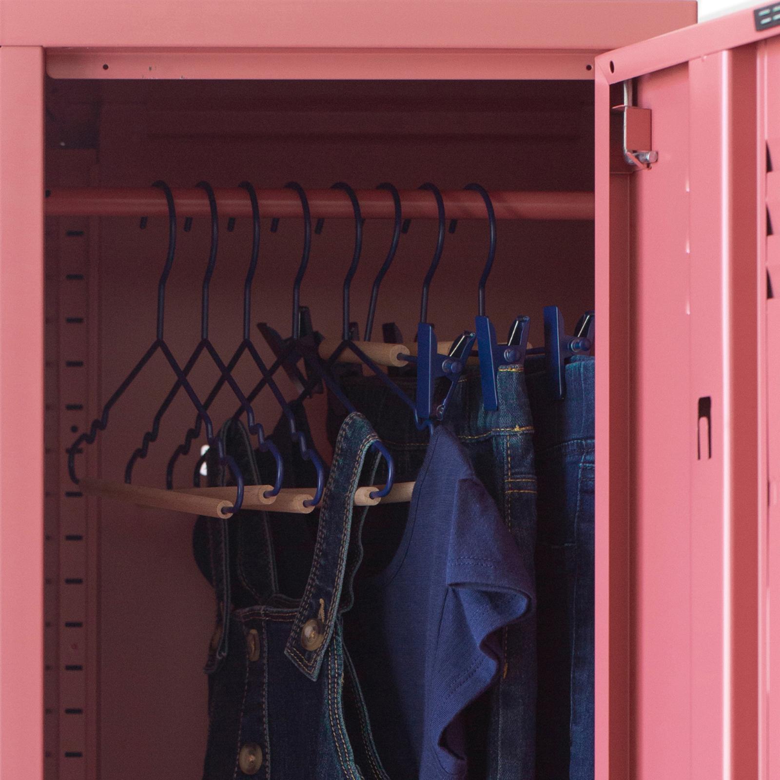Pack of 5, Say hello to the cutest clip hangers for your little people! Our fancy clip hangers have a smooth matte powder-coated finish, a wooden detail and two clips perfect for holding onto your clothes. These adorable mini hangers will hold tiny baby-size clothes up to age ten size clothing. The Hangers fit perfectly inside The Skinny or The Twinny.