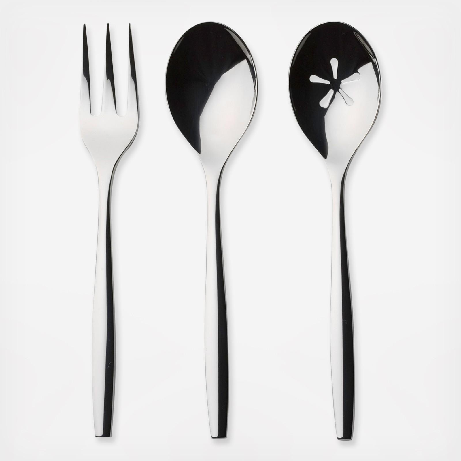 Handsomely designed, Aidan's modern tailoring makes it an ideal companion for any dinnerware. Comprised of a serving spoon, slotted serving spoon and serving fork, this set will become an instant entertaining go-to.
