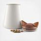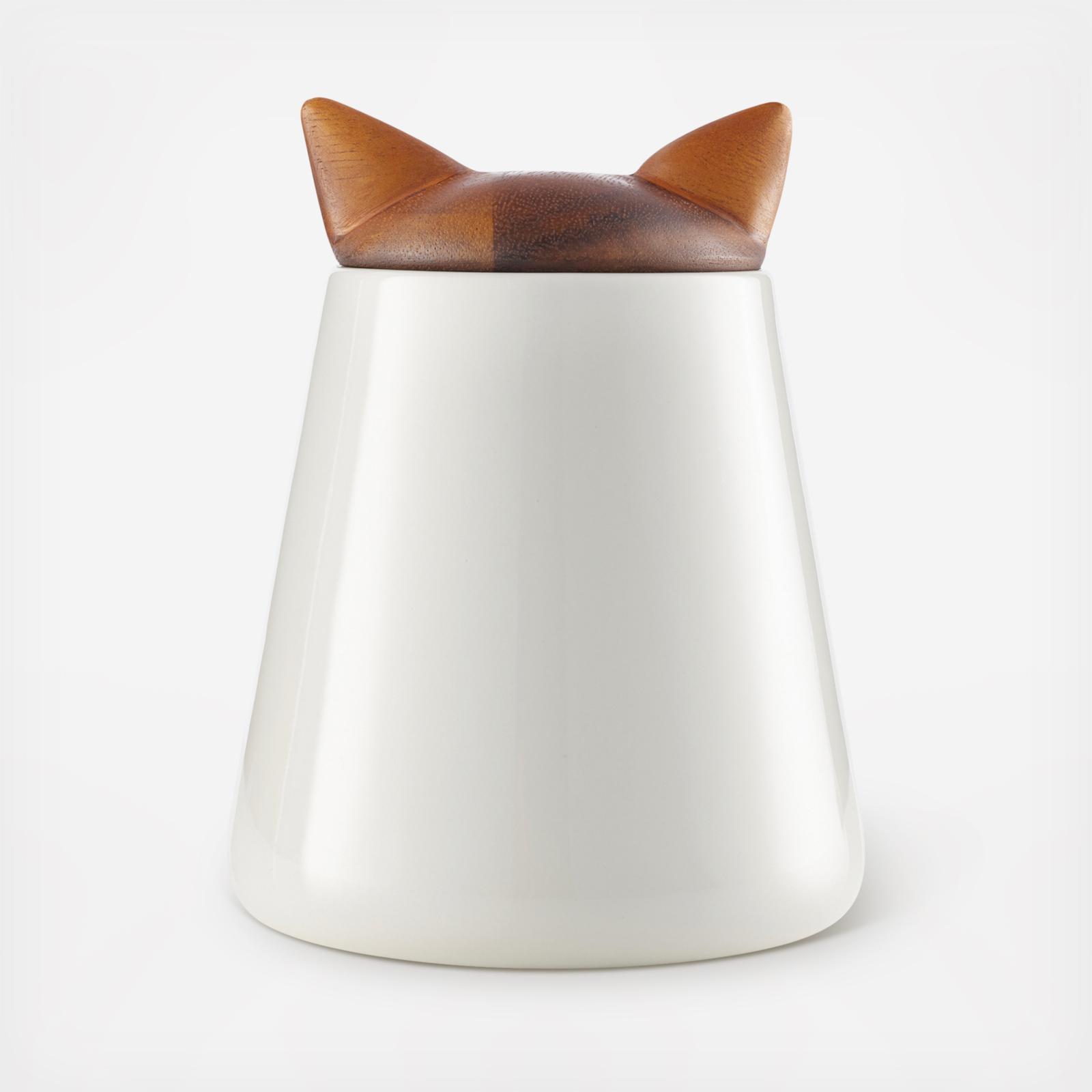 Calling all pet lovers! Introducing the Pet Collection. A treat jar you’ll want to leave front and center on the counter, the Cat Treat Jar is an adorable interpretation of a feline, showcasing its loveable pointy ears. With a porcelain base and wood lid, this storage container blends with any decor and seals tight to keep its contents fresh.