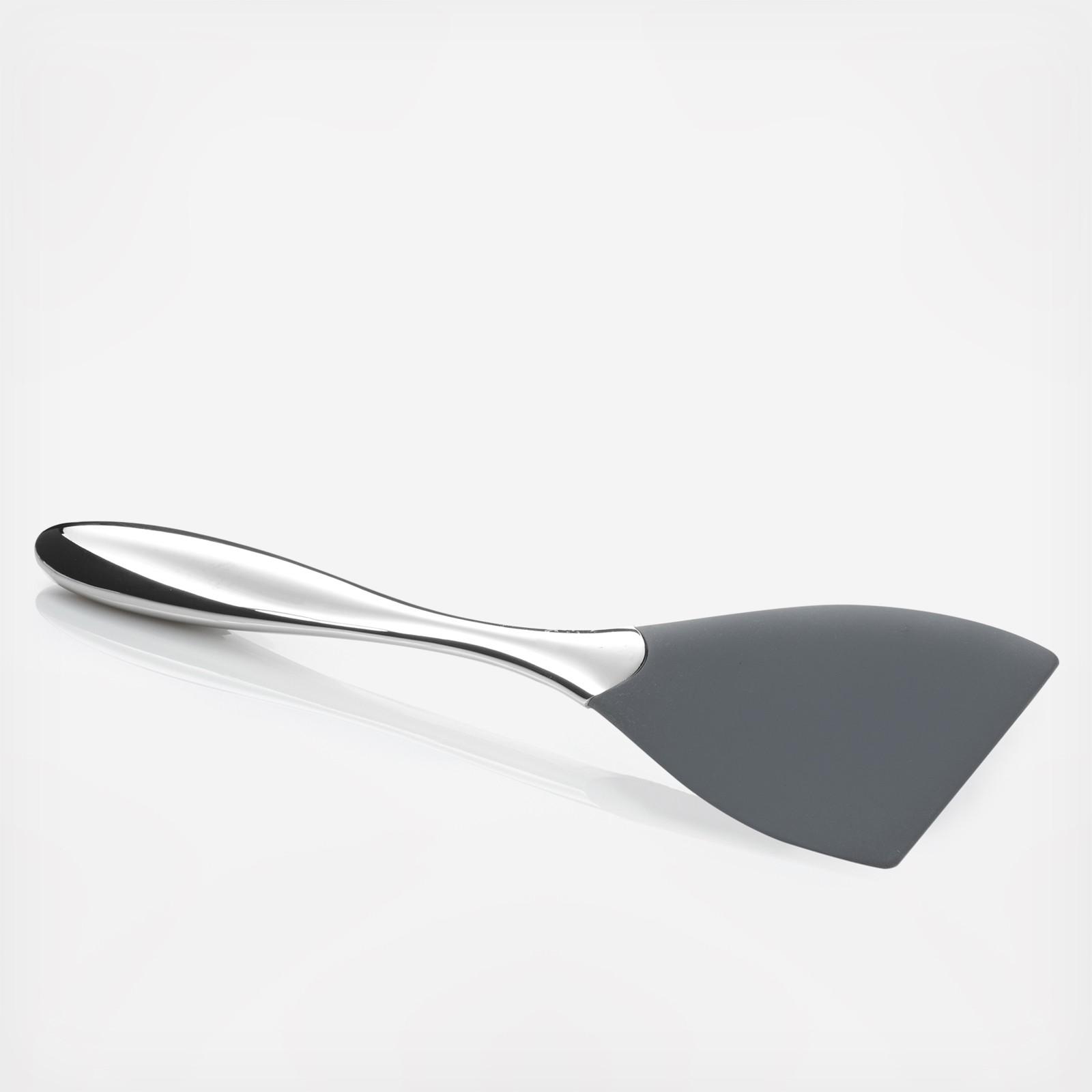 The Curvo Spatula features a fabulous slanted head of heat-resistant silicone. Its wonderfully substantial, perfectly balanced stainless steel handle makes it a pleasure to hold and maneuver. Designed by Steve Cozzolino exclusively for Nambe, this dishwasher-safe spatula is just the type of high quality, go-to tool that a serious chef or baker uses and treasures throughout the years. Fabulous on its own or in a set with the Curvo Spoonula and Bowl Scraper.