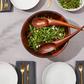 The elegant lines and flowing curves of designer Wei Young's Harmony Salad Set beautifully complement the fresh food prepared within. A tabletop classic, this rounded bowl and the gently curved tongs it comes with add whimsy and invite nature indoors. Plus, this entire set is made of Acacia wood, a dense and durable hardwood that will not absorb stains or odors.