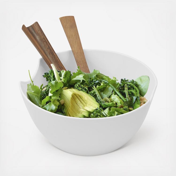 Classic in white, the Quatro Salad Bowl with Servers is a beautiful combination of bone china and acacia wood. With servers that nest and fit seamlessly into the design of the generously-sized bowl, it is a piece you’ll turn to again and again, from casual weeknight dinners to gatherings with friends and family.