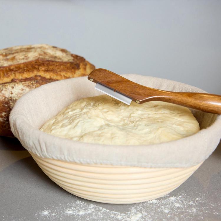 With an acacia wood handle, magnetic safety cap, and five stainless steel blades, this lame lets you score dough easily for professional-quality results and beautiful artisanal loaves.