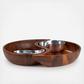 The Yin Yang Chip & Dip is a stunning serving piece with four components. The two large individual Acacia Wood bowls form the bottom portion of the chip and dip accompanied by two generous Nambe Alloy dip dishes. The Nambe alloy dip bowls feature the signature Nambe alloy attribute of heat and cold temperature retention and can be placed in the freezer or in the oven. Nest the pieces together or use each piece separately to suit your personal entertaining needs.