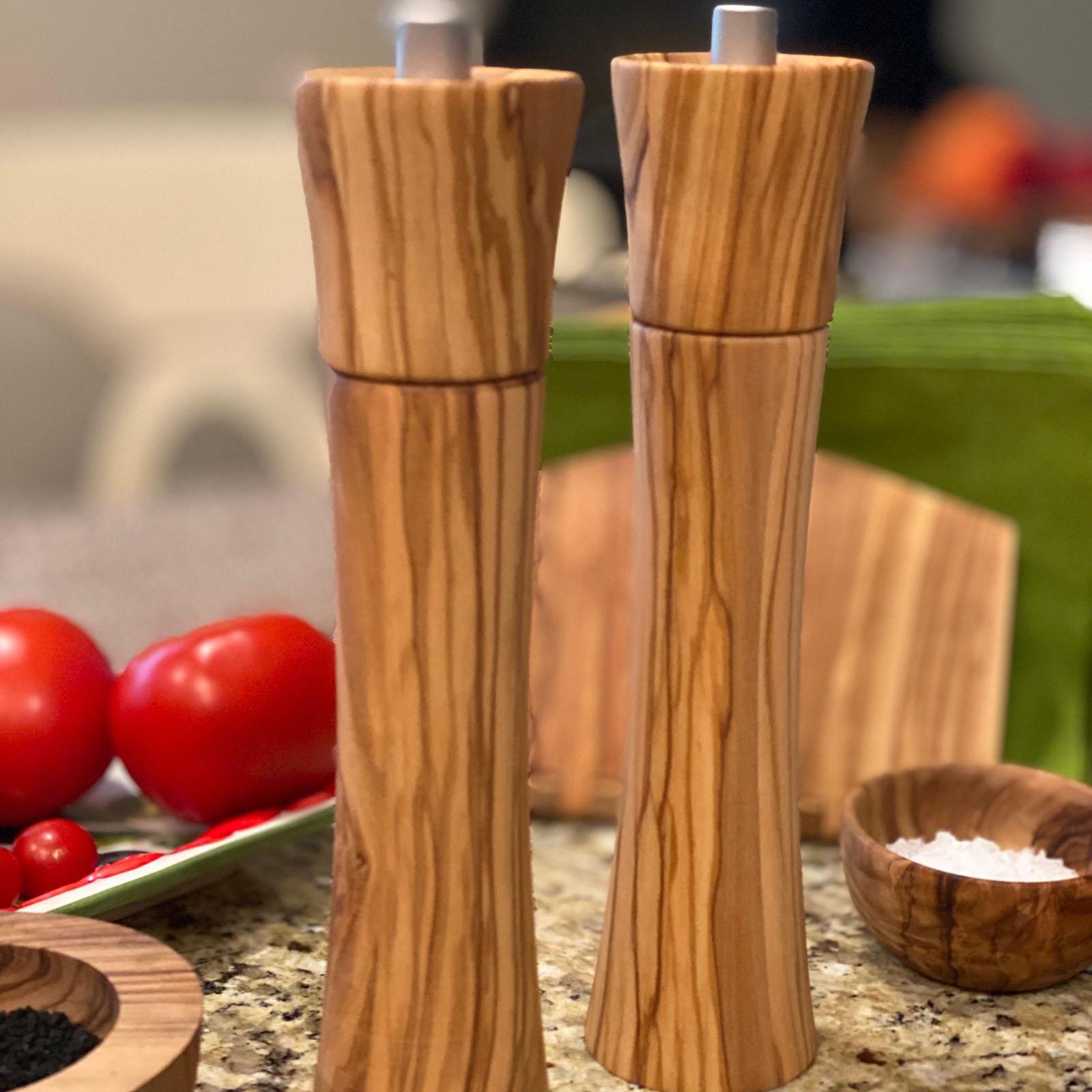 This solid olive wood peppermill is great for everyday use. With a twist of this top you can adjust from fine to coarse, releasing the classic aromatic flavor of freshly ground pepper corns.