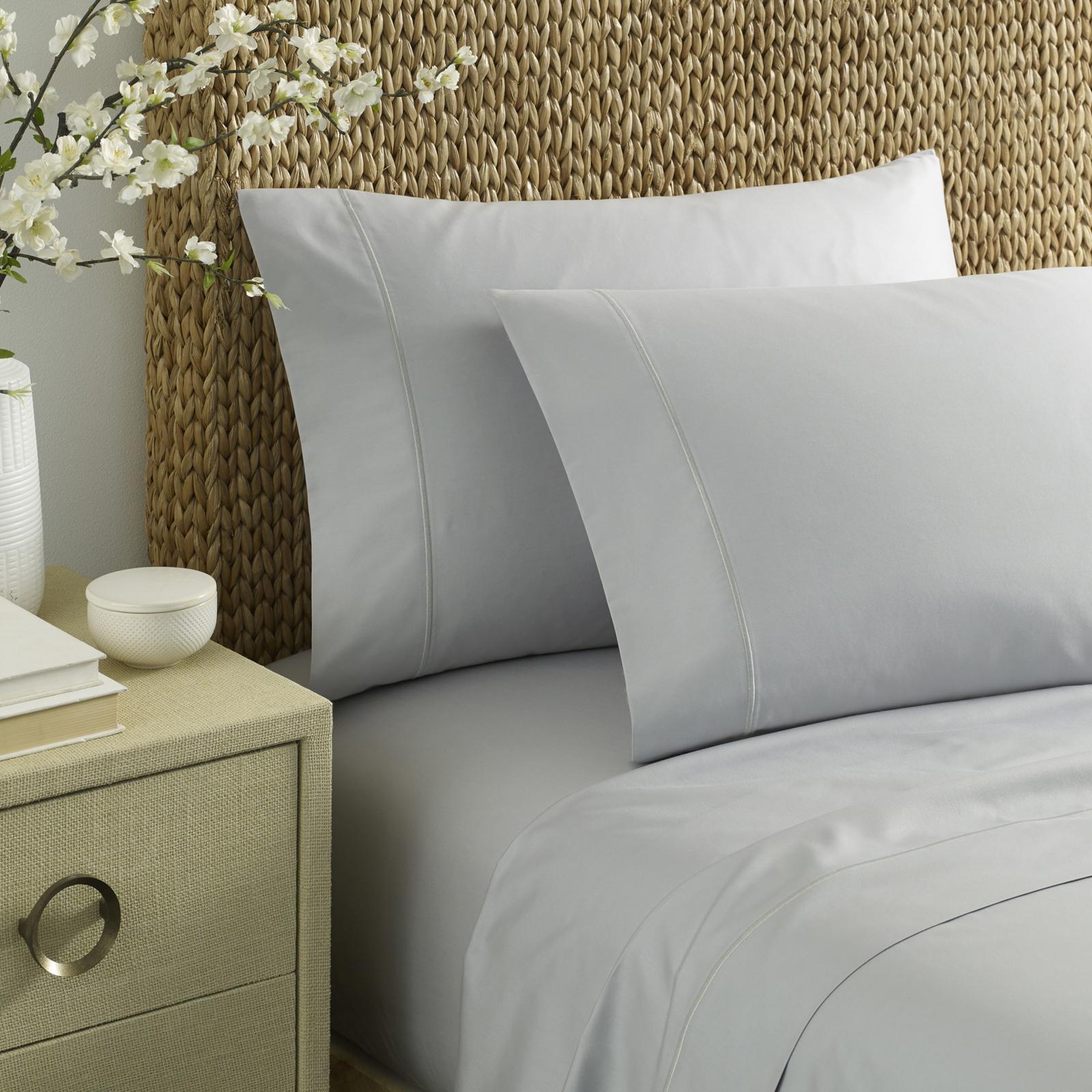 Add a touch of elegance and comfort to your bed with the regatta cotton luxury sheet set. Available in deck white, grey haze, sea mineral green, and maritime navy, these sheets are sure to match any bedroom décor. With their luxurious 400 thread count cotton sateen construction, these sheets are anti-pilling and have an extra soft hand feel. Each sheet set includes one flat sheet, one fitted sheet, and two pillowcases. The fully elasticized fitted sheet has deep pockets with extra wide elastic, which prevents slipping and ensures a perfect fit on your mattress. This set fits mattresses up to 18" deep and is machine washable for easy and convenient care.